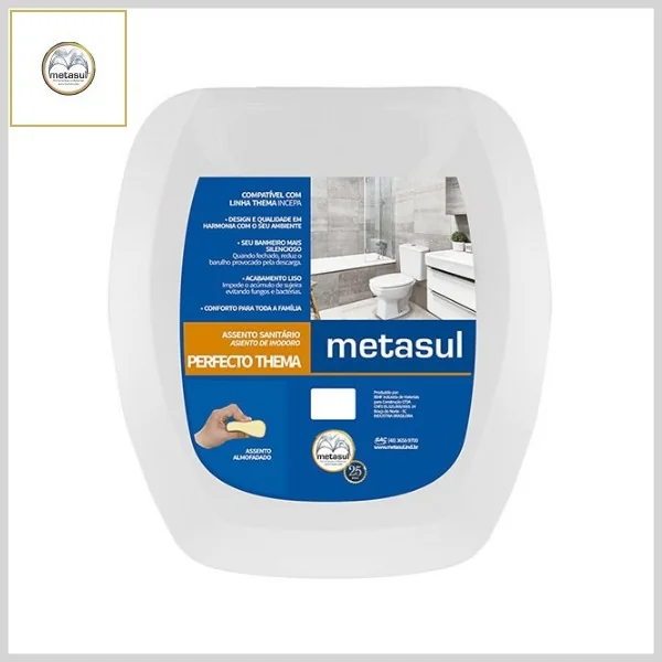 O assento sanitário plástico Perfecto Thema Almofadado, fabricado pela Metasul, é uma excelente escolha para quem procura conforto e praticidade em seu banheiro. Com sua almofada em espuma de alta densidade, este assento proporciona uma experiência confortável ao usuário, reduzindo a pressão sobre a região glútea e tornando o uso do banheiro mais agradável.